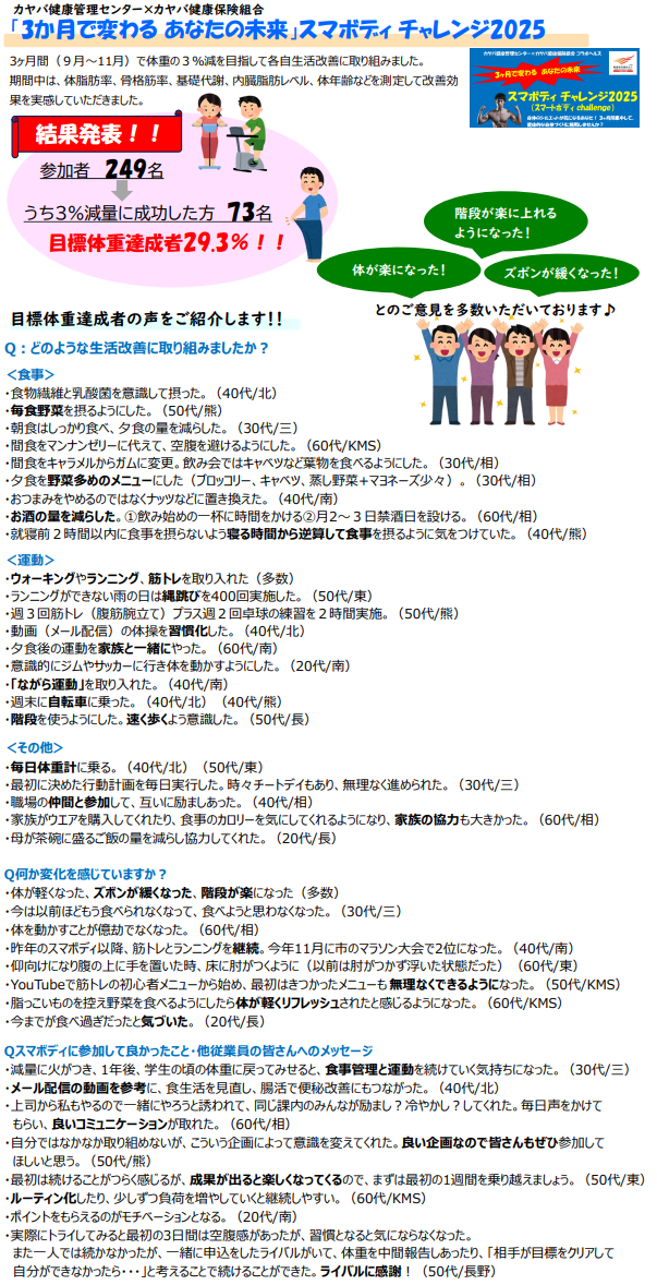 「スマボディチャレンジ2025」〜結果発表・目標体重達成者の声〜
